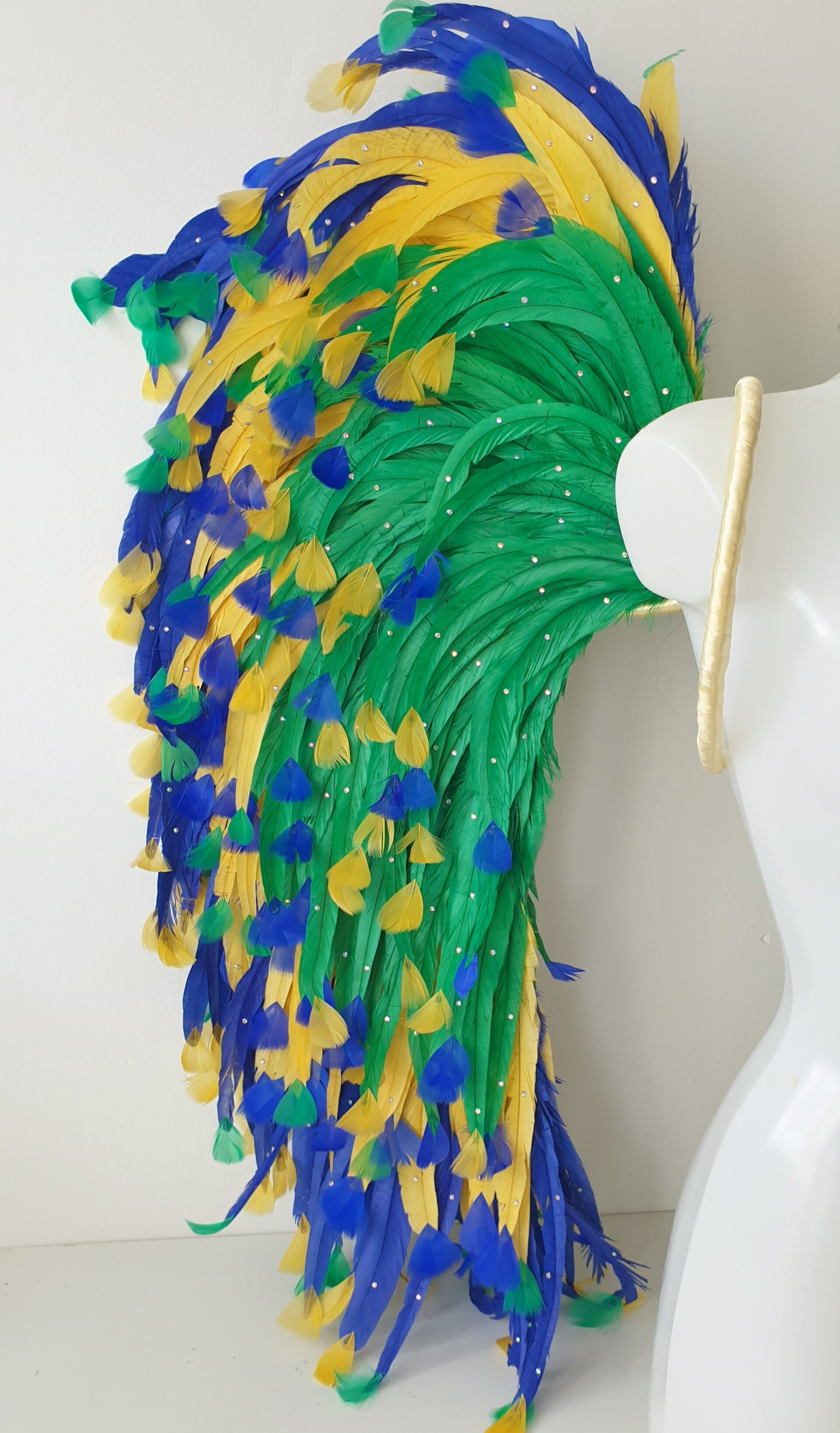 For these you can use different kind of colors and different kind of feathers. We have a few different sizes and styles, and we can match it with an existing costume. All wings are very lightweight. They are also easy to carry/transport due to the removability of the feathers from the frame.